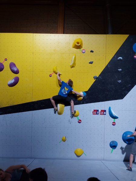 Rudy valide à vue la zone du premier passage mais ne trouve pas les méthodes pour des deux autres. Il devra se contenter de la 6 ème place au général, ce qui est très méritant pour notre junior première année confronté à des adversaires bien plus expérimentés que lui.