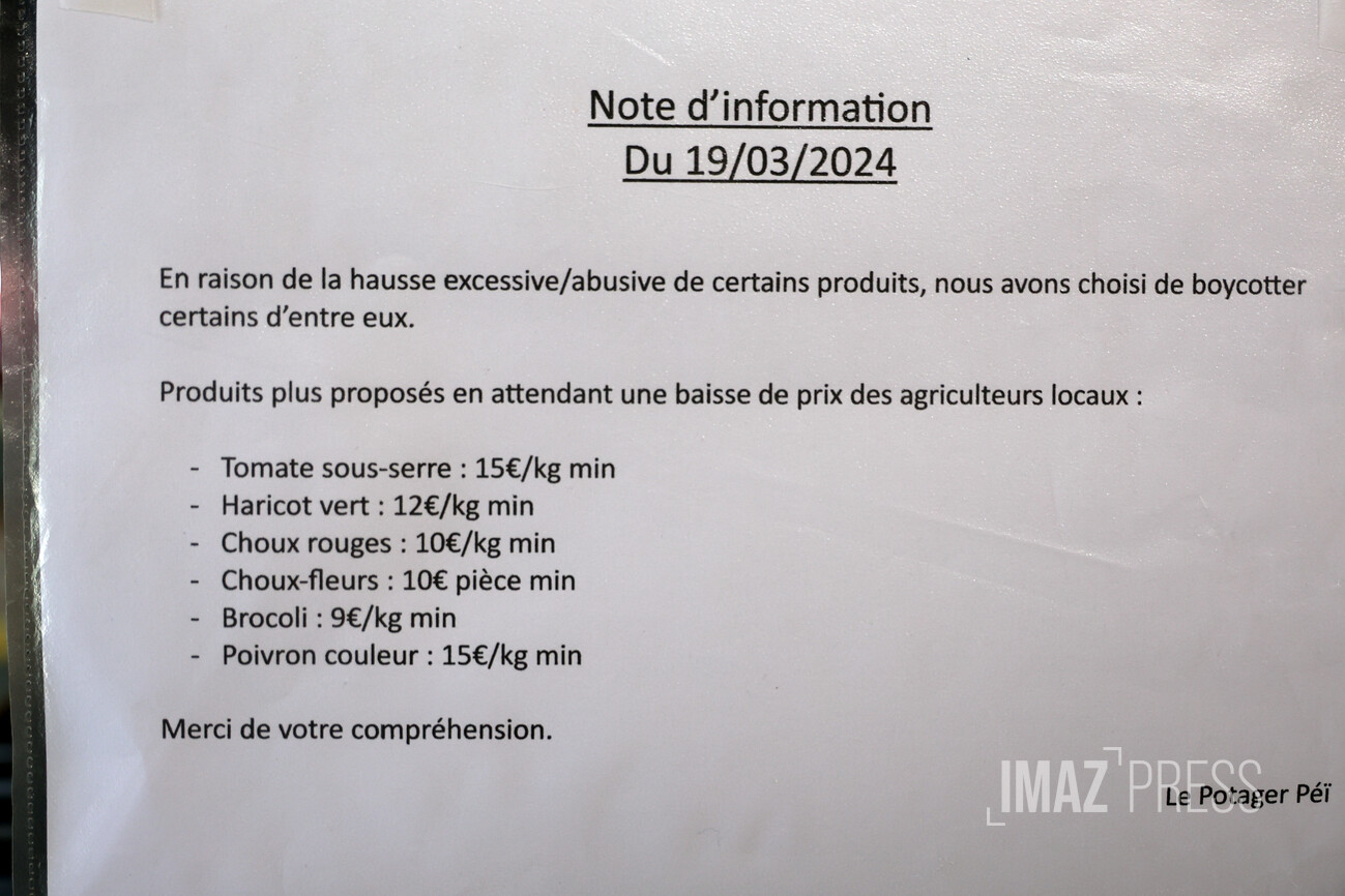 Un prix si élevé qu'un primeur de Sainte-Marie a même décidé de boycotter les tomates et les haricots verts, mais aussi les choux rouges, les choux-fleurs, les brocolis et les poivrons. "
