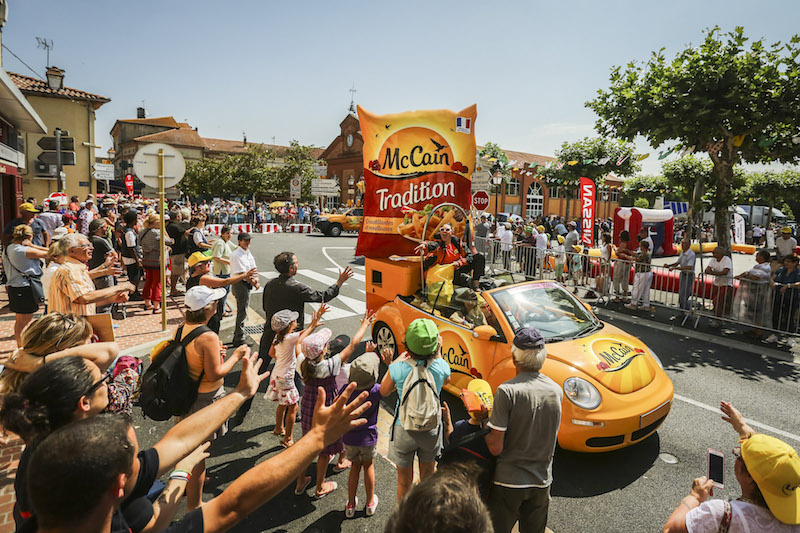 Ce n’est pas sur un vélo mais à bord d’une caravane que Charlotte Gonier a fait le Tour de France 2017. Âgée de 22 ans, la Réunionnaise fait partie des très nombreux caravaniers qui animent le public spectateur tout au long du plus grand événement sportif de France. Cette année, pour sa deuxième collaboration, elle a défilé à bord d’une caravane promotionnant une marque de frites canadienne.