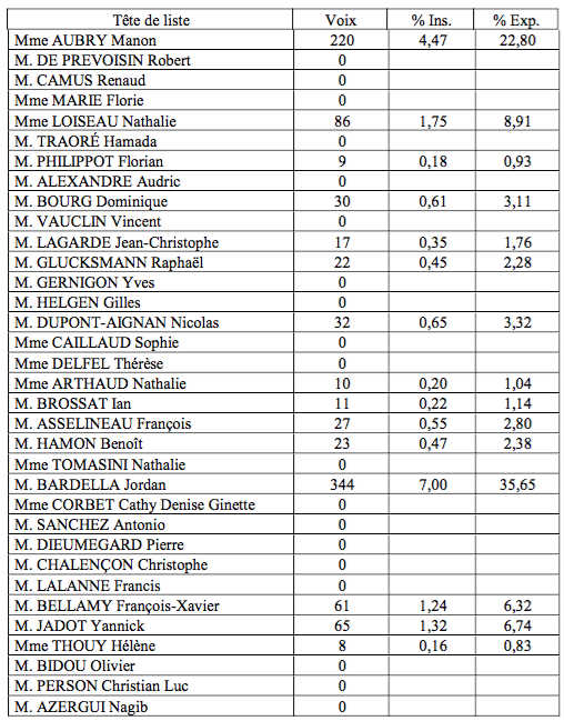 • Guy Hadji (Alliance écologiste indépendante) : 0,03 %