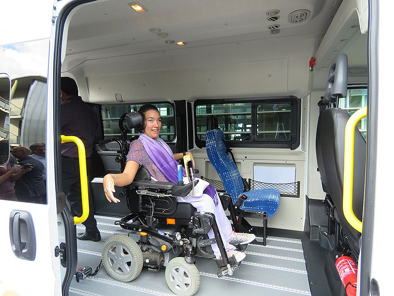 Trois véhicules adaptés aux personnes à mobilité réduite ont été livrés ce vendredi 26 février 2015 à la Sodiparc à Saint-Denis. Ils viennent s'ajouter aux quatre existant et complètent le dispositif City Ker qui répond à la demande croissante. Quatre navettes circulaient déjà sur le réseau urbain depuis le 28 février 2014, allant de Saint-Denis à Sainte- Suzanne en passant par Sainte-Marie.
