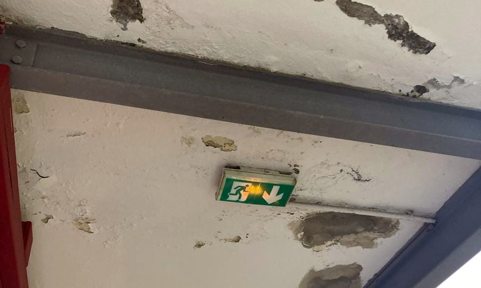 Fissures, moisissures, plafond qui craque… Un collectif d'enseignants du collège Marcel Goulette à Piton Saint-Leu se mobilisent ce jeudi 4 avril 2024 pour pointer leurs "mauvaises leurs conditions de travail". Un rassemblement qui "fait suite à l'absence de réponse du Conseil départemental concernant nos revendications", précisent les grévistes. Contacté, le Département a souigné, qu'"une planification de travaux (a été) réalisée l'année dernière en concertation avec l'établissement". Des travaux qui devraient se poursuivre dans le courant de cette année (Photo : Facebook)