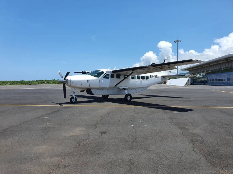 La compagnie AB Aviation a annoncé la disparition du vol Y61103, faisant la rotation Moroni / Mohéli, ce samedi 26 février 2022. "L'avion de type CESSNA 208B immatriculé 5H-MZA a décollé de l'aéroport de Moroni à 11h50 et a disparu des radars à environ 2.5 km de l'aéroport de Mohéli en mer" précise-t-elle. Des recherches ont été déclenchées et deux cellules de crise pour l'accueil des familles des passagers sont installées à l'hôtel Le Retaj Moroni à la Grande-Comore et l'aéroport de Bandarsalam à Mohéli. Samedi en fin de journée des débris de l'appareil auraient été repérés en mer. Les recherches se poursuivent ce dimanche matin (Photo AB Aviation)