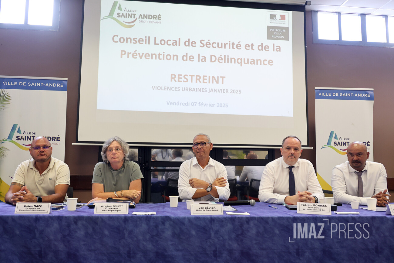 Le Conseil local de sécurité et de prévention de la délinquance (CLSPD) s’est réuni ce vendredi 7 février 2025 à l’hôtel de ville de Saint-André. Cette séance restreinte a permis d’échanger sur les problématiques de sécurité dans la commune et d’annoncer la mise en place prochaine d’un Groupe local de traitement de la délinquance (GLTD) dans le quartier de Fayard. (Photo : sly/www.imazpress.com)