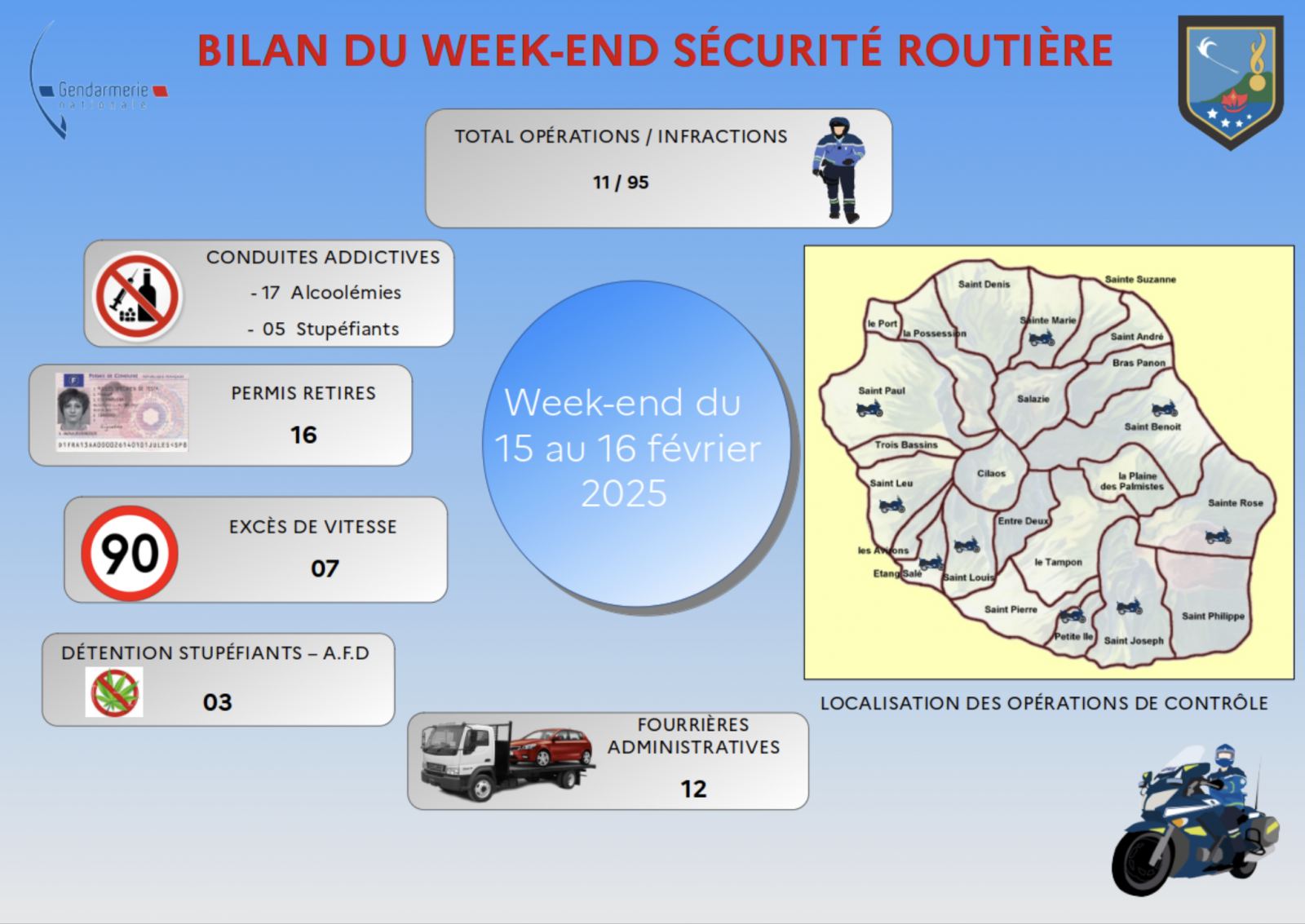 La gendarmerie a réalisé 11 opérations de contrôle, relevant 95 infractions ce week-end du 15 au 16 février 2025. 17 alcoolémies ont été relevées et 5 conduites sous stupéfiants. 16 permis ont été retirés (Photo d'illustration www.imazpress.com)
