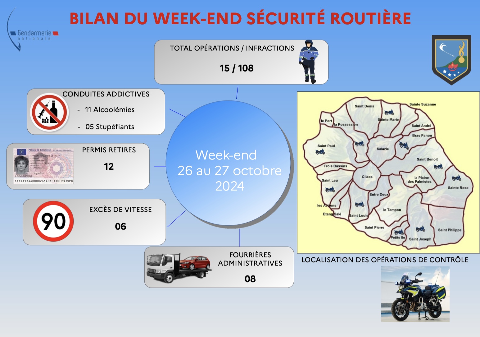 49 fonctionnaires de police ont été mobilisés à cette occasion. Au cours de ces différents contrôles, les forces des Polices locales ont également procédé à la constatation de 124 autres diverses contraventions au code de la route dont :