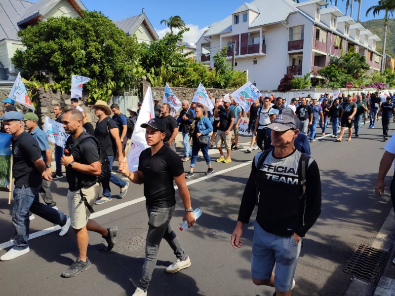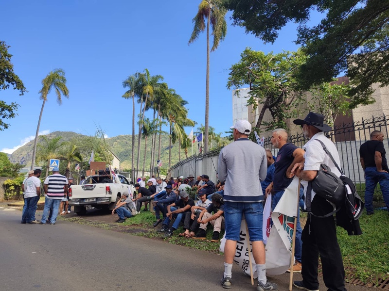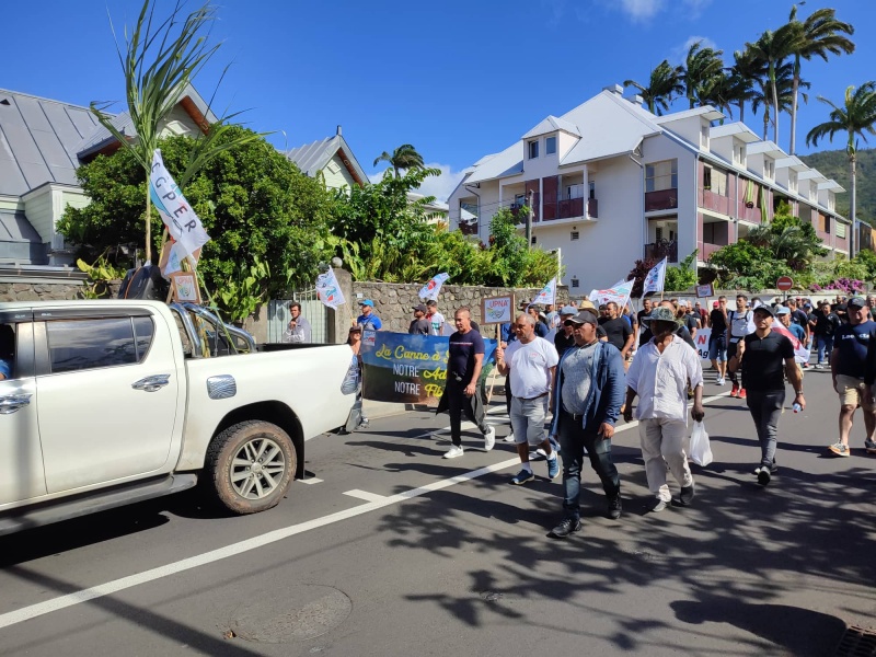 Une centaine de personnes sont déjà présentes devant la préfecture. Les manifestants vont marcher jusqu'au parc de la Providence où doit se tenir - au centre technique interprofessionnel de la canne et du sucre (CTICS) -, une réunion avec les industriels.