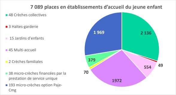 Au début de l’année 2020, on dénombrait dans l’île 1 719 assistants maternels agréés, pour une offre totale de 4 602 places.