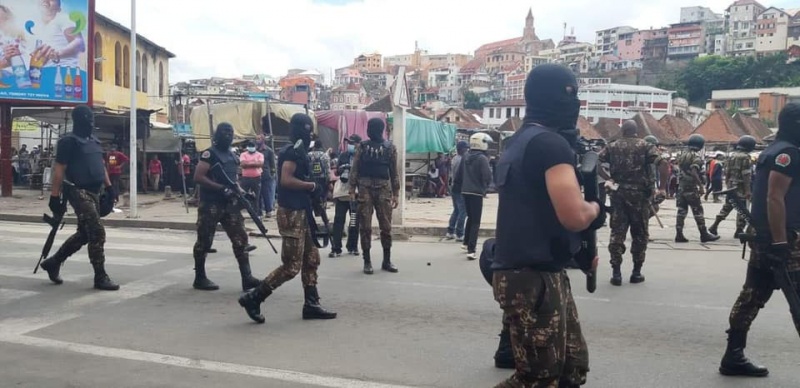 Photos Ă l'appui, plusieurs interpellations ont eu lieu le jour de la manifestation." Ce sont des milliers de militaires, armĂ©s jusquâaux dents, amassĂ©s Ă lâarriĂšre de pick-ups et de blindĂ©s, que Rajoelina a dĂ©ployĂ© dans les rues dâAntananarivo" Ă©crivent les membres du RMDM RĂ©union dans une tribune libre qui fait entre autres le rĂ©cit de cette journĂ©e chaotique. La manifestation a, de fait, Ă©tĂ© annulĂ©e.