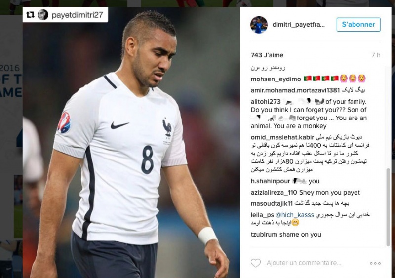 L'origine de l'attaque peut surprendre : le compte Instagram de Dimitri Payet a été inondé de critiques, parfois très hargneuses... d'Iraniens. La raison ? Avoir blessé, délibérément selon eux, Cristiano Ronaldo en finale de l'Euro, alors que le Portugais est une icône pour les amateurs de foot en Iran.