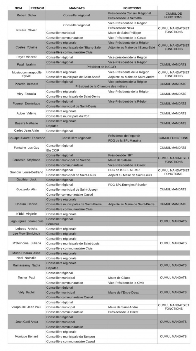 Il y a une vingtaine de jours, La Réunion s'est couverte de jaune, La Réunion a laissé sortir sa colère, La Réunion s'est révoltée contre les injustices et le mépris patent. Pour calmer la foule, Didier Robert investit un nouveau costume, celui du défenseur du mantra " un homme - un mandat - une fonction. " Après avoir cumulé pendant des années, le président de la Région Réunion se repent et démissionne de la direction de la Société Publique Locale Réunion (SPL) des Musées Régionaux pour laquelle il percevait 6.800 euros net par mois. Dans la foulée, des élus réunionnais le suivent et abandonnent un des mandats qu'ils cumulaient. Mais qu'en est-il de la majorité de Didier Robert ? Car sur ses 31 conseillers régionaux, 22 cumulent...