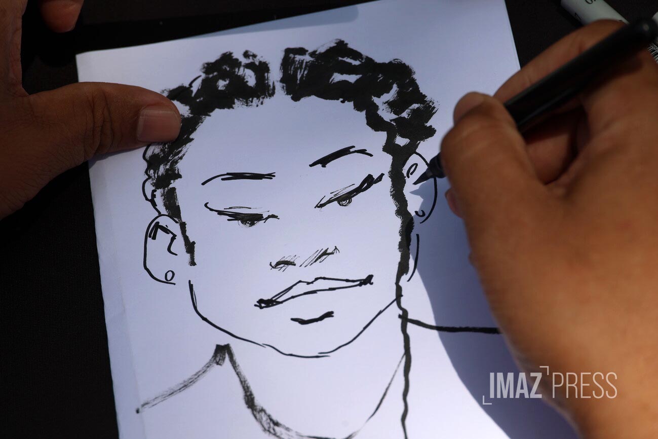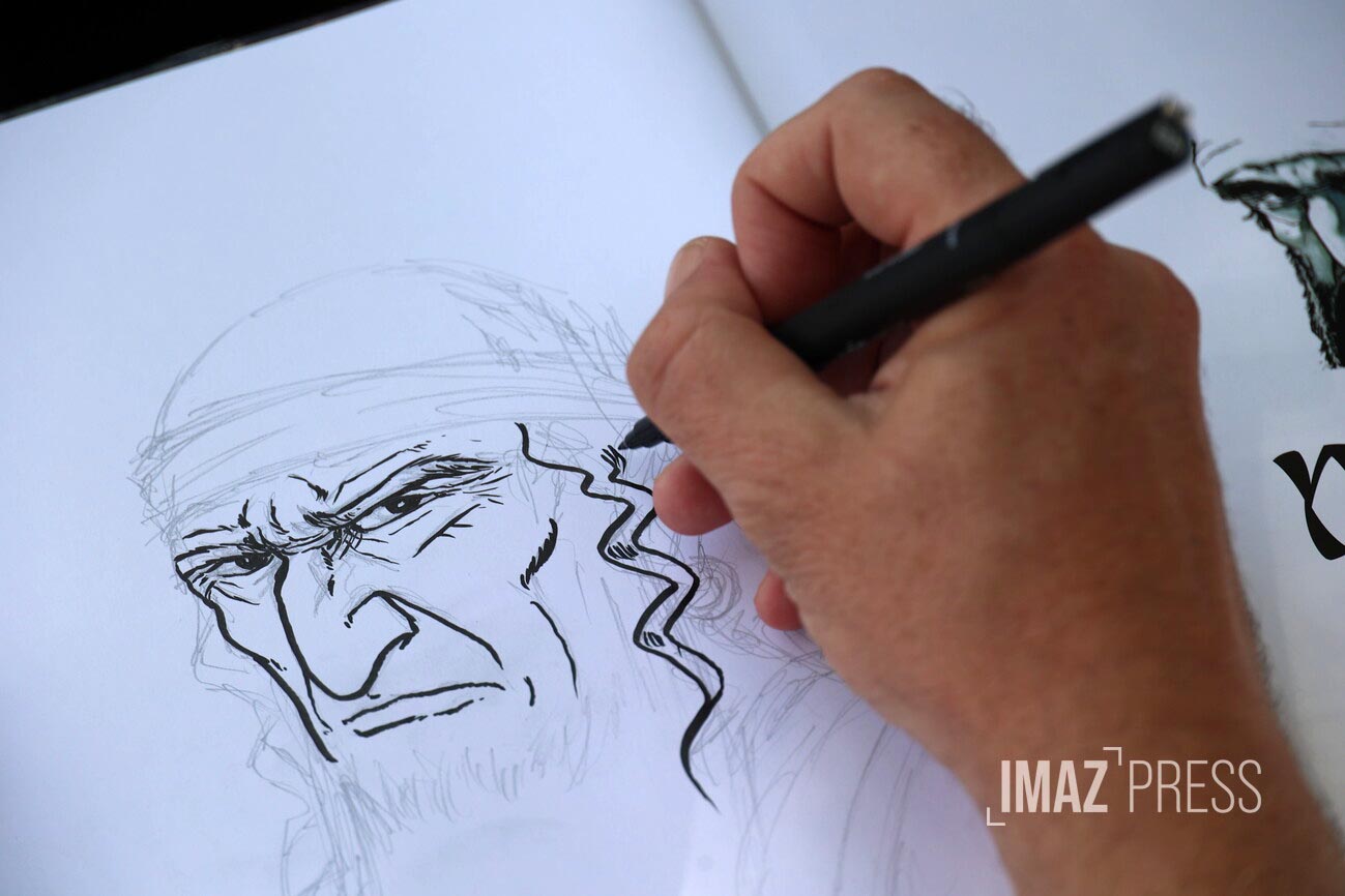 Dans sa main, son carnet de dessins sur lequel il fait quelques esquisses, il donne vie à son imaginaire, à ce qu'il voit devant lui… cette fois, c'est nous qu'il voyait...