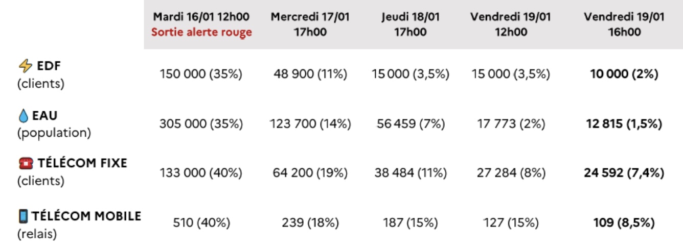 Bravo aux services qui ont contribué (et continuent) à rétablir les différents réseaux!
