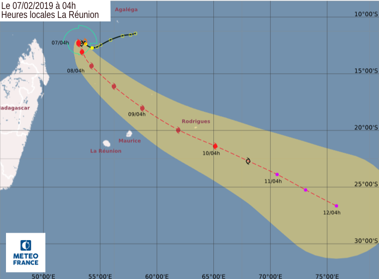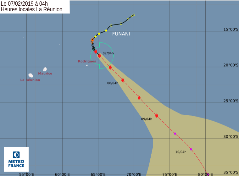 Funani est devenu cyclone intense. Il génère des vents soufflant en moyenne à 195 km/h et à 280 km/h en rafales. Selon les prévisions de Météo France.