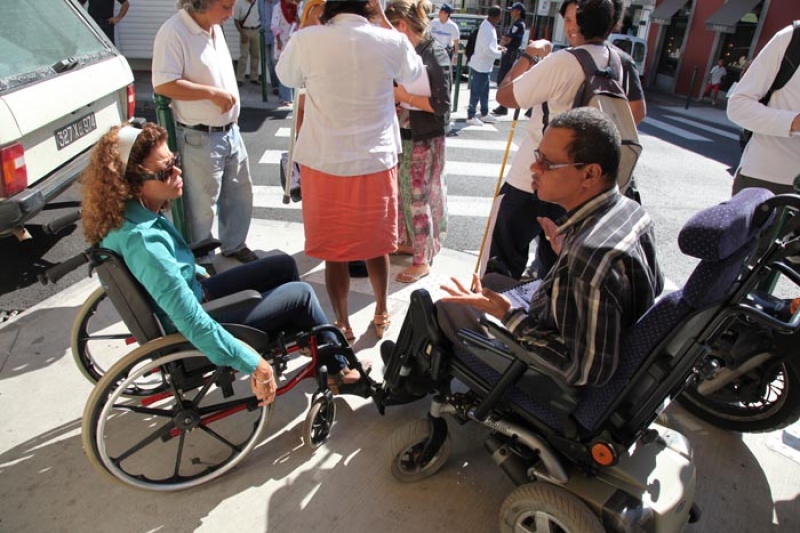 "On ne choisit pas d'être handicapé, on naît ainsi ou on le devient par la force des choses", tient à signaler Monique Orphé, première adjointe à la mairie de Saint-Denis. "Malheureusement, la situation de ces personnes passe dans l'indifférence quand nous ne sommes pas directement touchés, ou que nous n'avons personne dans notre entourage qui est concerné", ajoute-t-elle."Le développement des villes s'est fait sans la prise en compte des handicaps", regrette Monique Orphé. "C'est pourquoi nous voulons remédier à cette situation et mettre en place davantage d'actions pour les aider à se déplacer dans l'espace public, et pour leur faciliter l'accès aux bâtiments publics et communaux", explique l'adjointe à la mairie. Elle a par ailleurs souligné "leur envie de vivre et leur courage", et reste à leur écoute pour améliorer certaines choses. "Des efforts ont été fournis par la mairie, mais le chemin est encore long à parcourir. Il faut notamment sensibiliser la population et éviter les incivilités. Les personnes porteuses de handicaps peuvent aussi nous guider dans nos travaux, nous dire ce dont elles ont besoin", continue Monique Orphé.