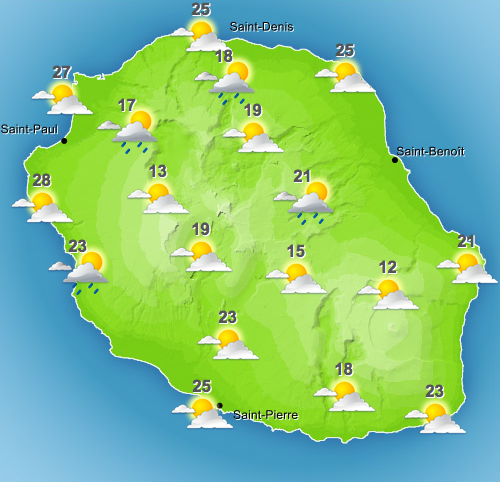 Les températures maximales atteignent 15°C au Volcan et 24 à 28°C sur le littoral.