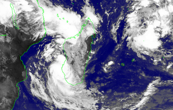 Passé au stade de tempête tropicale modérée durant la nuit de ce jeudi 16 à ce vendredi 17 janvier 2014, Deliwe suivi par Météo France dans le canal du Mozambique se trouvait à 16 heures ce vendredi à 1445 km à l'ouest-sud-ouest de La Réunion (24.5 Sud/ 41.6 Est). Le système dépressionnaire se déplace à une vitesse de 22 km/h selon une direction sud-sud-ouest, s'éloignant ainsi de l'île française. Aucune menace cyclonique n'est donc envisagée pour les prochaines 72 heures, indique Météo France. (image mtotec.com)