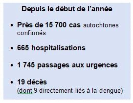 - 10 communes n'ont pas rapporté de cas : Sainte Marie, Salazie, La Plaine des Palmistes, Sainte Rose, Bras Panon, Etang Salé, L'Entre deux, Saint Joseph, Saint Philippe.