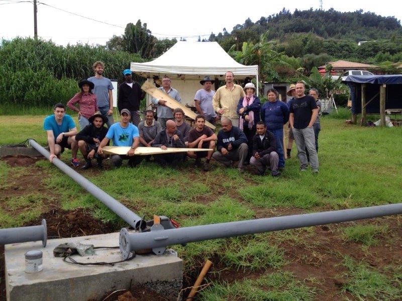 Une éolienne est en cours de fabrication par 20 personnes de la formation "agriculture bio" mise en place pour l'année 2015 par Pôle Emploi. Financés par un agriculteur de l'est de l'île qui gardera l'éolienne dans son champ, en complément de ses panneaux photovoltaïques, les matériaux ont été mis à la disposition des stagiaires. Ils fabriquent le mât, les pâles, les bobines de générateur et effectuent les travaux de soudures et de menuiserie