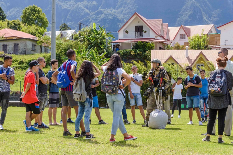 Jeudi 24 janvier, le 2e Rpima a participé à la Journée défense et citoyenneté (JDC) organisée par le Centre du service national (CSN) de La Réunion-Mayotte. Cette 3ème édition de la JDC délocalisée sur Cilaos avec le 2e Rpima devient un rendez-vous très prisé des jeunes scolaires du cirque. Elle a permis aux parachutistes de la Section commando d'appui à l'engagement (SCAE) de démontrer leur savoir-faire en matière de saut à ouverture retardée avec une projection au-dessus du cirque et un atterrissage sur le stade Irénée Accot.