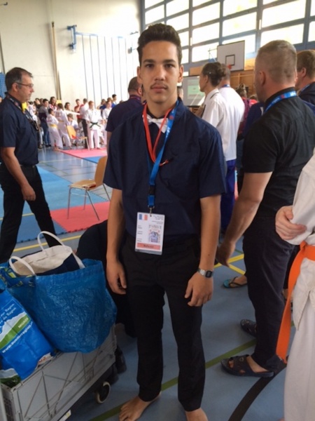 Samuel 19 ans est licencié au club Scorpo Kan Dojo de la Bretagne et étudiant en métropole en Staps d'Amiens. Il fait ses armes en senior. Depuis le début de la saison il enchaîne les compétitions en métropole après l'Open de Premesques en novembre et l'Open international France à Lille en mars dernier où il a terminé 2 ème et 3ème. Samuel a remis le couvert en Suisse avec une double casquette : arbitre de coin le samedi et combattant le dimanche. Inscrit dans La catégorie -70kg à 65kg, il est le plus léger sur le papier. Samuel a du livrer de durs combats avec plusieurs prolongations pour arriver en finale face à un Allemand.