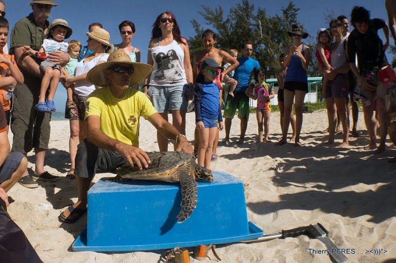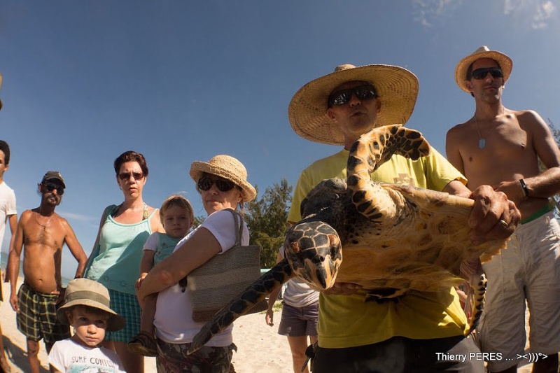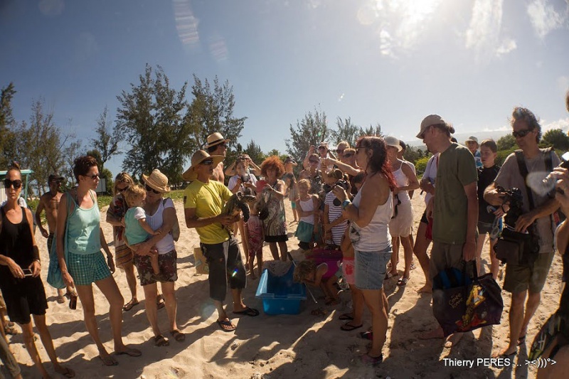 Les spectateurs étaient au rendez-vous puisque pour les fêtes de Noël, l’observatoire des tortues marines a organisé un parrainage sur internet. Les 30 premiers parrains et marraines inscrits ont pu venir assister à la remise en liberté de Moana. La tortue de 41 cm, lâchée aux alentours de la passe de l’Ermitage, devrait retrouver ses congénères souvent observés dans ce secteur.