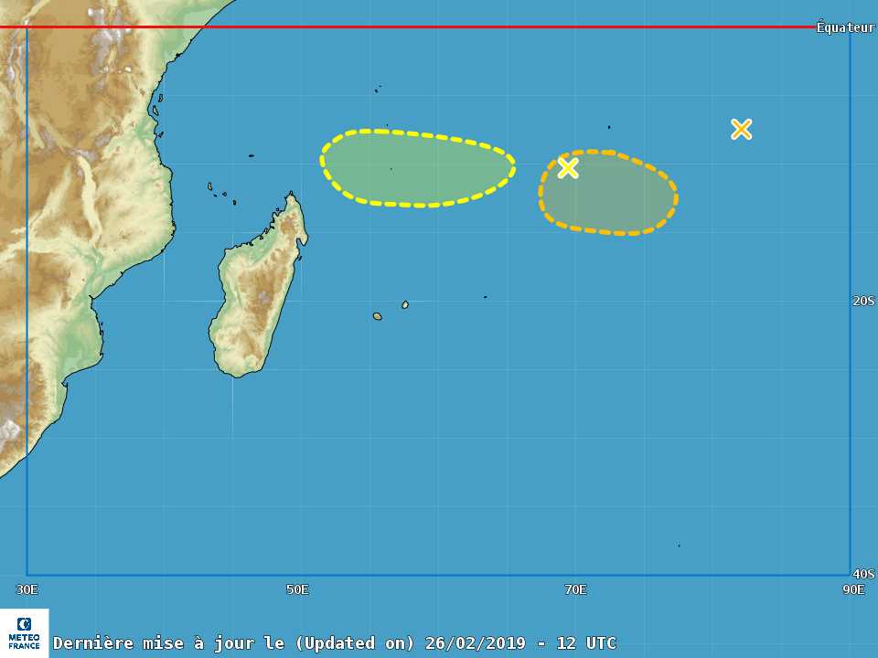 La saison cyclonique n'est pas finie... Météo France indique surveiller deux zones suspectes. La première se trouve au sud-ouest de Diego Garcia, et la seconde à l'Est de cette même île. Les futurs Heleh et Idai ? Ces phénomènes pourraient devenir des tempêtes tropicales au cours du week-end ou dans la semaine prochaine. Impossible pour autant de savoir si La Réunion sera menacée. "La prévision est encore trop lointaine pour être précise quant aux trajectoires de ces deux phénomènes," nous expliquait lundi 25 février 2019 Philippe Caroffe, responsable de la prévision cyclone à Météo France.