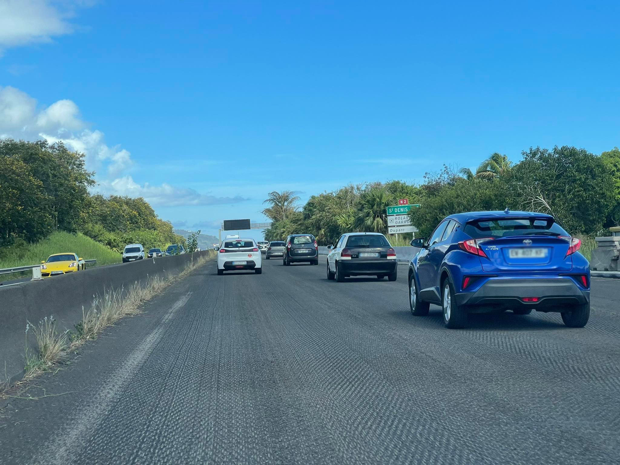 En raison de travaux sur la chaussée à Sainte-Marie, des difficultés de circulation sont rapportées dans le sens est-nord ce mardi matin 28 février 2023. La route est en effet rainurée au niveau de Sainte-Marie. Les embouteillages s'étendent de Duparc à Sainte-Suzanne, avec des zones roulantes (Photo VS/www.imazpress.com)