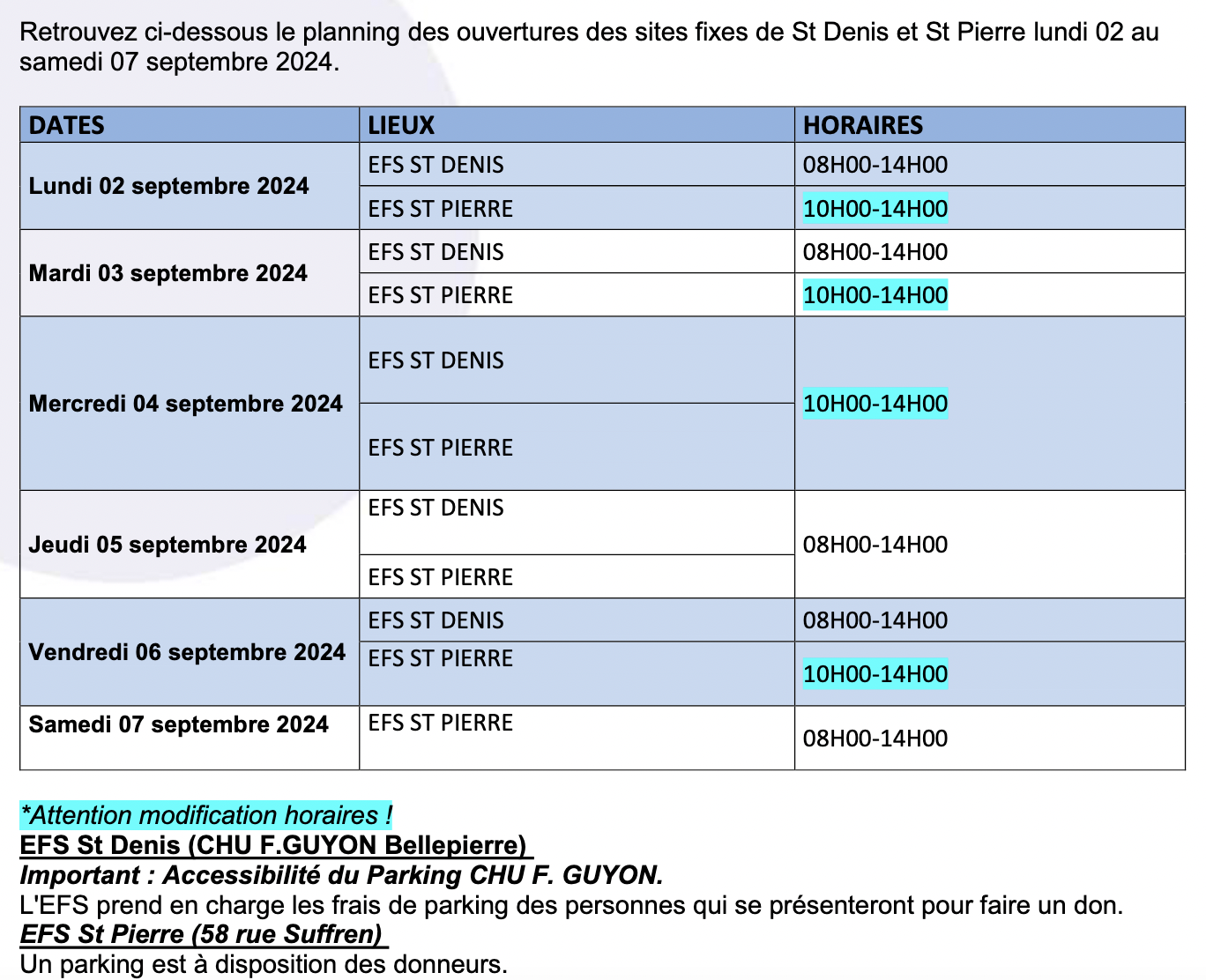 L’Établissement Français du Sang La Réunion - Océan Indien vous informe des collectes de sang organisées du lundi 2 septembre au samedi 07 septembre 2024 (Photo photo Sly/www.imazpress.com)