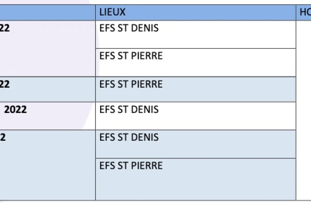 EFS Saint-Denis (CHU F.GUYON Bellepierre) Important : Accessibilité du Parking CHU F. GUYON. L'EFS prend en charge les frais de parking des personnes qui se présenteront pour faire un don. EFS St Pierre (58 rue Suffren) Un parking est à disposition des donneurs. Pour savoir où donner et obtenir des informations sur les conditions, contre - indications, rendez-vous sur dondesang.efs.sante.fr ou sur l’appli Don de sang