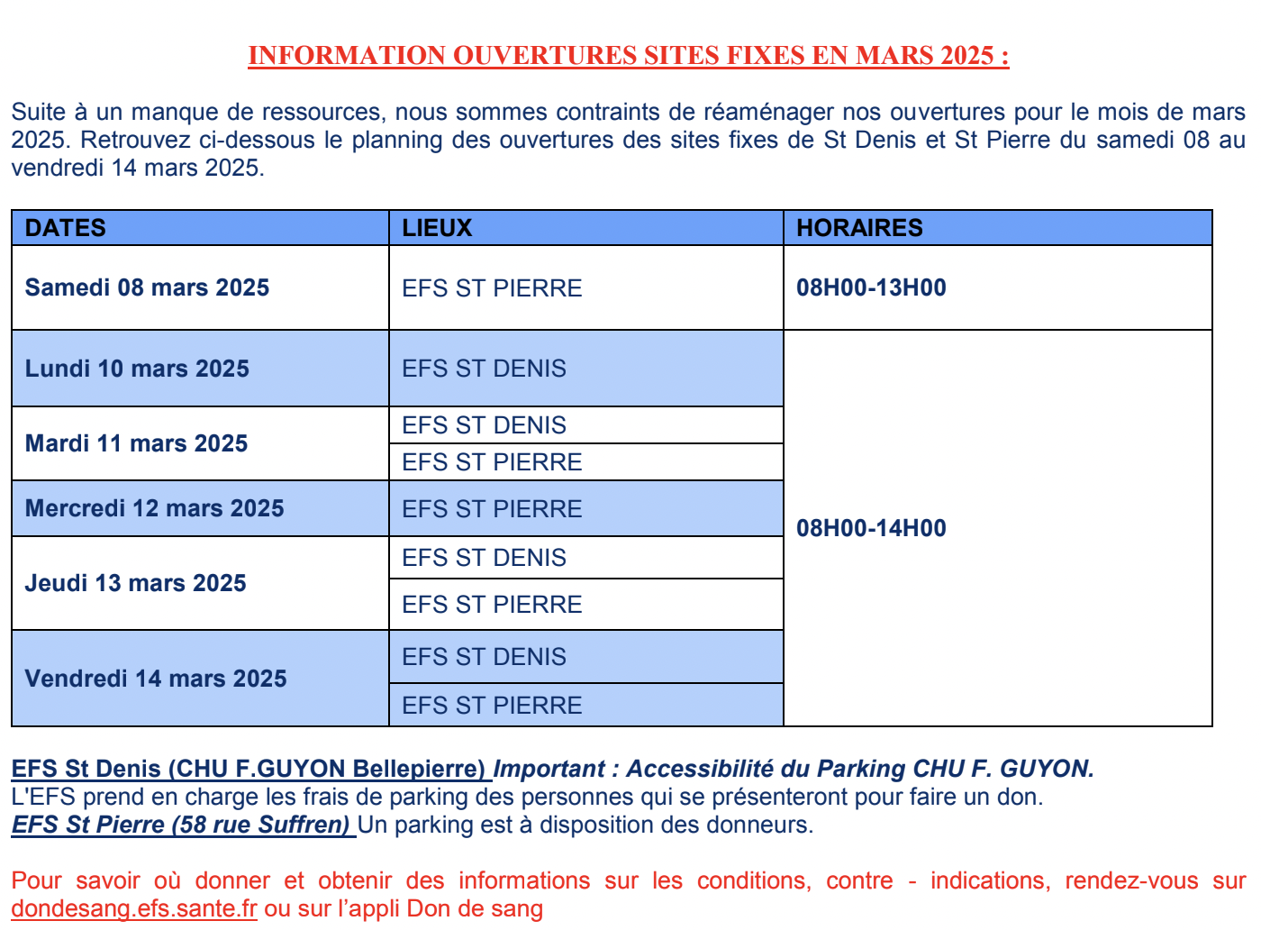 L’Établissement français du Sang La Réunion - Océan Indien vous informe des collectes de sang organisées du lundi 10 au vendredi 14 mars 2025 (Photo : rb/www.imazpress.com)
