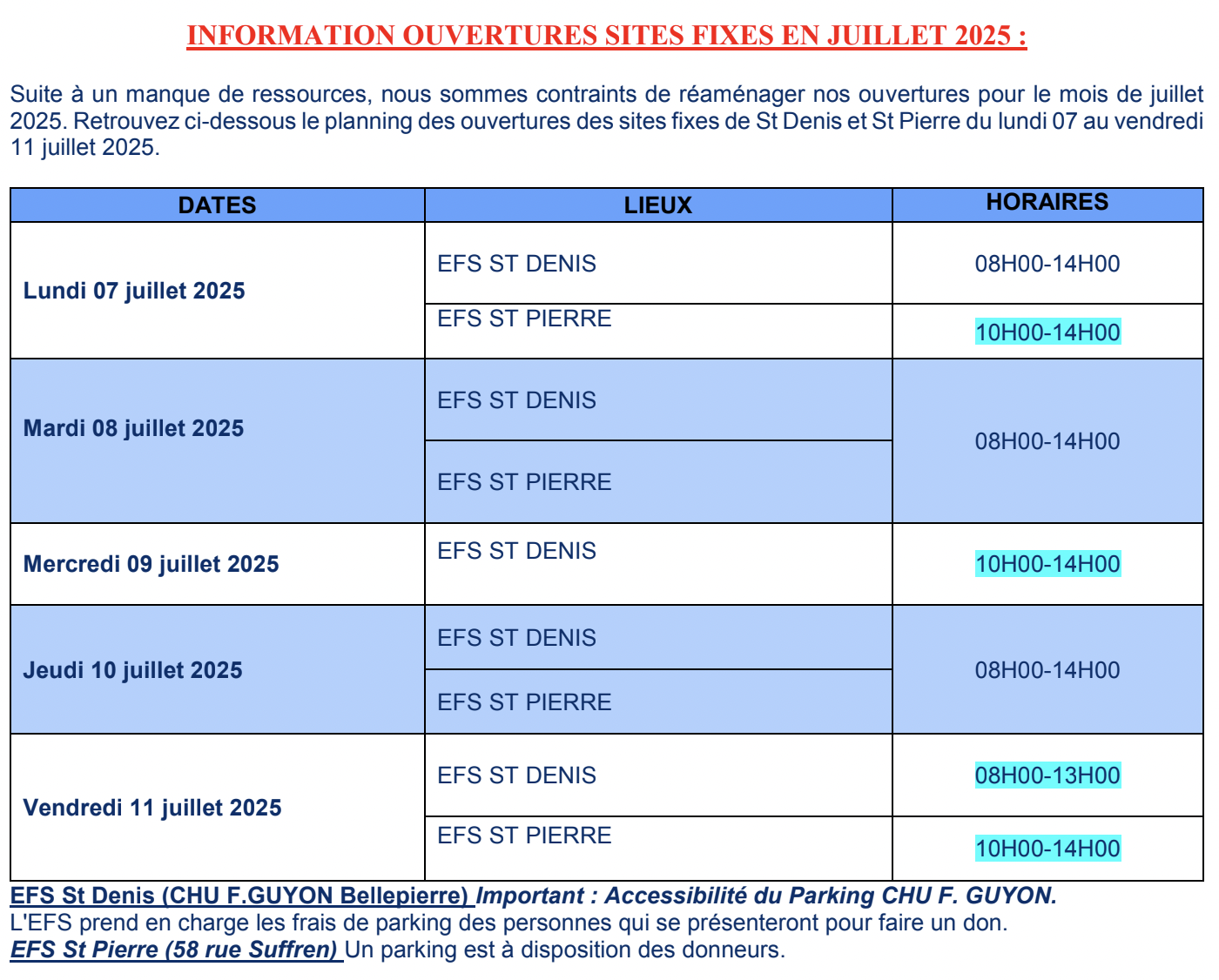 L’Établissement Français du Sang La Réunion- Océan Indien vous informe des collectes de sang organisées jusqu'au vendredi 11 juillet 2025 (Photo : www.imazpress.com)