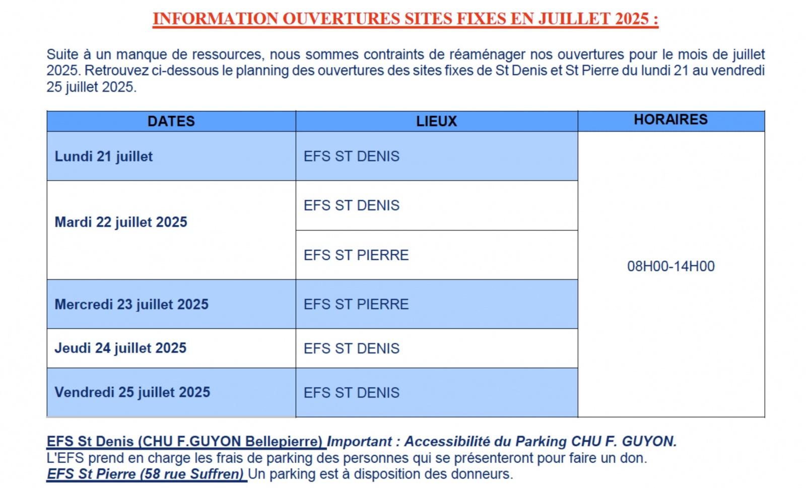 L’Établissement français du sang La Réunion-Océan Indien vous informe des collectes de sang organisées du dimanche 20 juillet au vendredi 25 juillet 2025 (Photo : sly/www.imazpress.com)