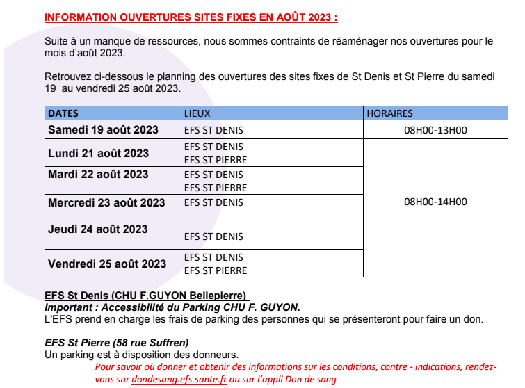 L'Établissement français du sang la réunion- océan indien vous informe des collectes de sang organisées du dimanche 20 au samedi 26 août 2023 (Photo d'illustration sly/www.imazpress.com)