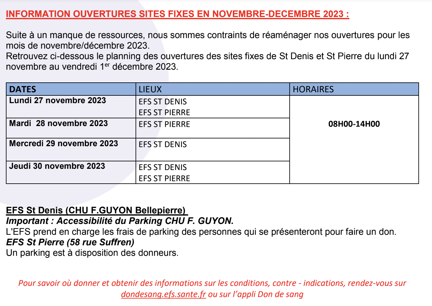 - En ligne à l’adresse suivante : https://dondesang.efs.sante.fr/
