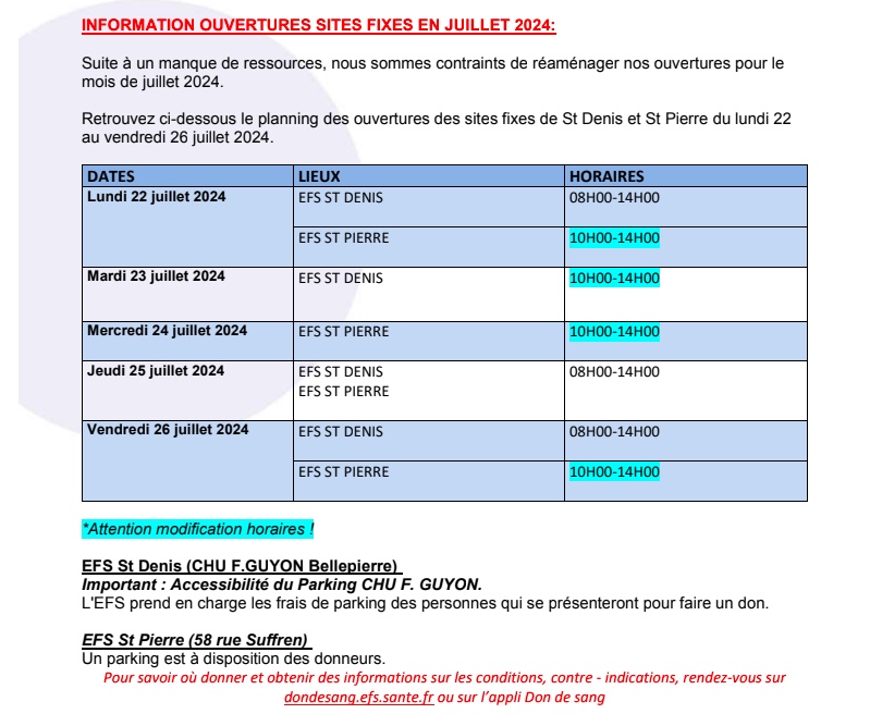 L’Établissement Français du Sang La Réunion- Océan Indien vous informe des collectes de sang organisées du dimanche 21 au samedi 27 juillet 2024 (Photo : sly/www.imazpress.com)