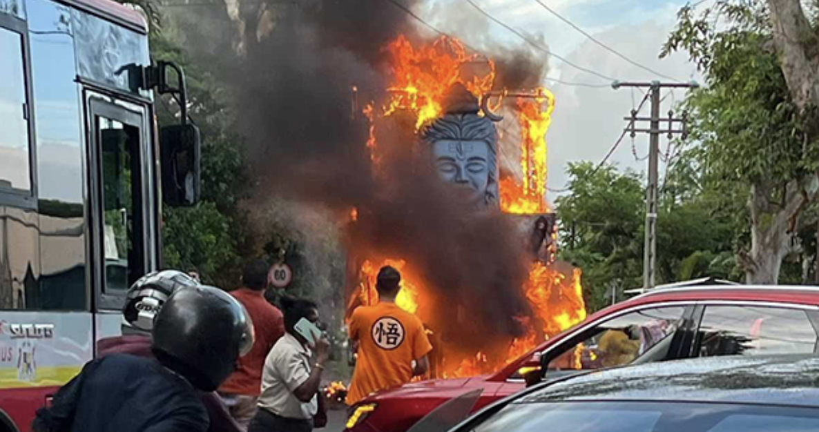 Six morts et dix-sept blessés. C'est le triste bilan du drame survenu dans la commune d'Arsenal à Maurice, où un char traditionnel hindou appelé "kanwar" du groupe Trikaal Sena a heurté une ligne électrique à haute tension ce dimanche 3 mars 2024. Le char a ensuite pris feu, ôtant la vie à ces jeunes pèlerins. Le groupe composé d'une quarantaine de pèlerins se rendait à Grand-Bassin dans le cadre du pèlerinage de Maha Shivaratri (Photo : L'Express Maurice)