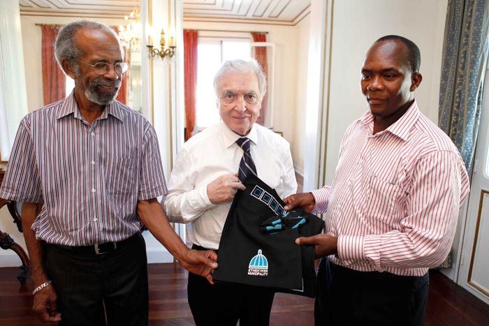 James Nxumalo, maire de Durban (Afrique du Sud), a été reçu ce lundi 16 avril par le 1er vice-président du conseil général, Roland Robert, délégué à la coopération régionale. Une séance de travail s'est déroulée à la villa du Département avec la délégation de la mairie de Durban et de la mairie du Port.