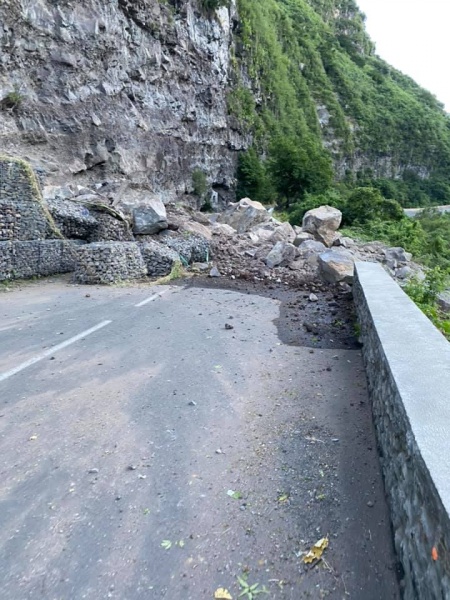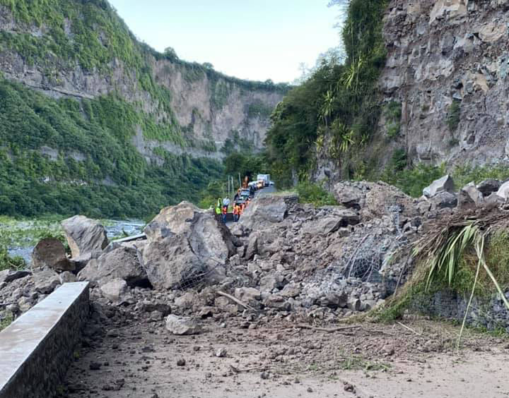 Le CRGT informe que sur la RN5 route de Cilaos à Saint Louis, suite à l'éboulement qui s'est produit dans la nuit du mercredi 13 au jeudi 14 mai 2020 dans le secteur des Aloès, la route est toujours fermée à la circulation. Une inspection a eu lieu. Des travaux de purges de la falaise ont été réalisé ce jeudi et sont toujours en cours. Ils reprendront ce vendredi, informe le CRGT dans l'après-midi. Une réouverture n'est pas envisagée pour l'heure au vu des risques importants relevés en falaise. (Photo Radar 974/Erwan Rivière)