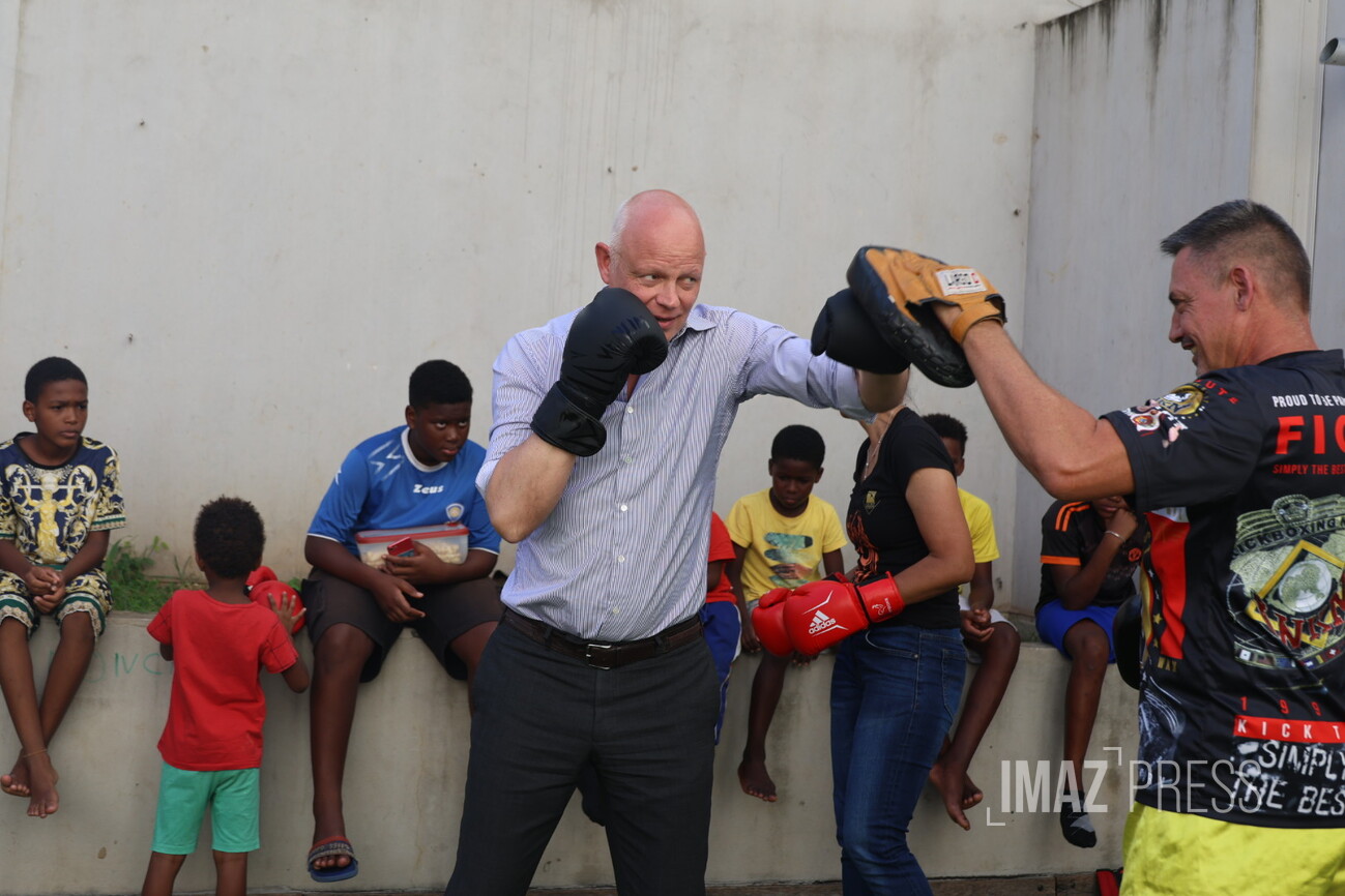 Deuxième jour de visite pour Édouard Philippe ce mercredi 21 février 2024. L’ancien premier ministre et actuel maire du Havre est à La Réunion pour quatre jours pour "comprendre les problématiques de l’île", à trois ans de l’élection présidentielle - pour laquelle il ne cache pas ses ambitions. Pour cette deuxième journée, le président du parti Horizons a participé à un entraînement de boxe à Saint-Denis. Il a ensuite visité le Grand port maritime, puis s'est rendu dans le sud pour y rencontrer les maires du Tampon et de Saint-Pierre (Photos: sly/www.imazpress.com)