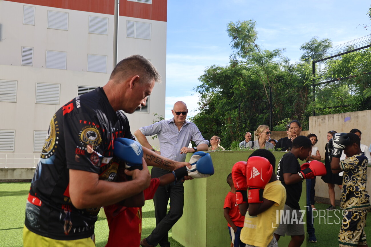 Ce mercredi, direction dès 8h30 dans le quartier du Montgaillard, à Saint-Denis, pour participer à un entraînement de boxe en compagnie d'enfants accompagnés par l’association EPA (Ecoute-Moi, Protège-moi, Aide-Moi) et le coach Didier Wullschleger. Malgré la chemise et les chaussures de ville, Édouard Philippe enfile volontier les gants pour s'essayer à la séance. Regardez