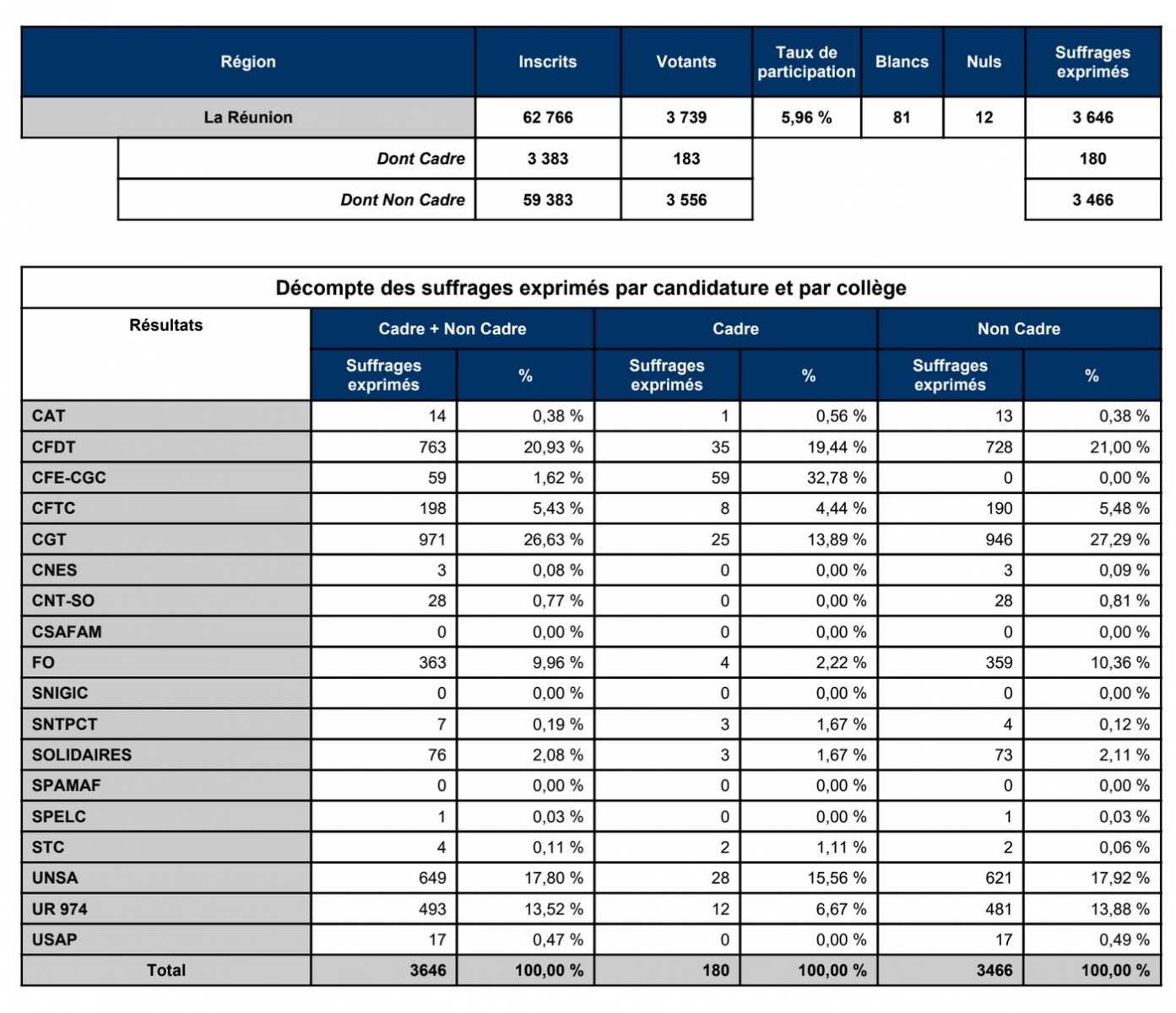 La Commission régionale des opérations de vote s’est réunie ce vendredi 16 avril 2021, en présence des organisations syndicales candidates, pour proclamer les résultats à l’élection syndicale TPE à La Réunion. Le scrutin s’est déroulé du 22 mars au 6 avril.