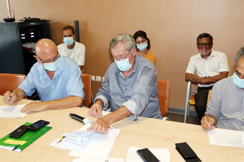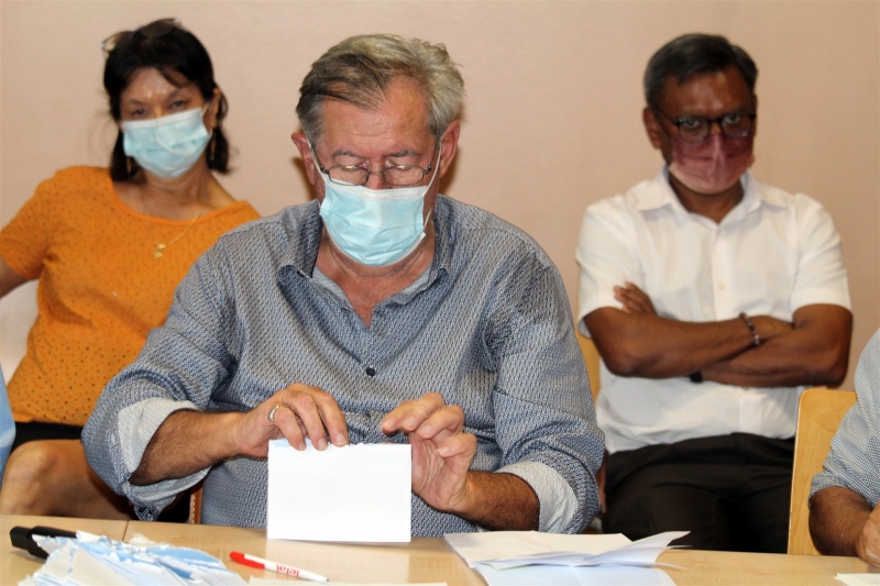Ce lundi 7 février 2022, les membres de la Délégation spéciale de l'Étang-Salé en présence de Maître Pascal Filippi, huissier de justice pour le tirage au sort des présidents et secrétaires de bureau de vote pour les élections municipales qui se tiendront les 20 et 27 février prochains. 79 personnes ont répondu à l'appel de candidature et 60 d'entre eux ont été tirés au sort pour constituer la liste principale. Les 19 autres forment la lise complémentaire en cas de désistement. Nous publions ci-dessous le communiqué de la ville de l'Etang-Salé. (Photos : Jimmy Tossem)