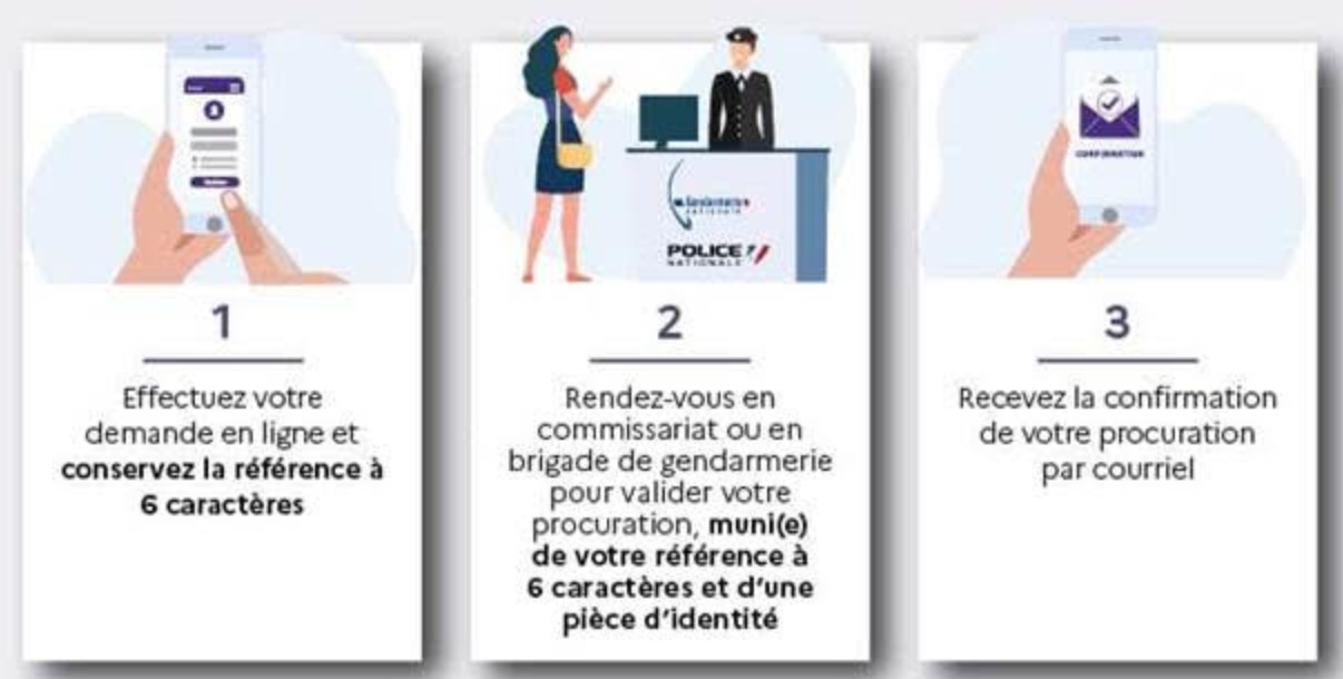 Ensuite, rendez-vous dans une brigade de gendarmerie ou un commissariat de police pour faire valider votre procuration Une fois que vous avez reçu la confirmation par courriel que votre procuration est validée par les forces de l’ordre et la mairie, informez votre mandataire qu’il pourra se rendre dans votre bureau de vote pour voter à votre place.