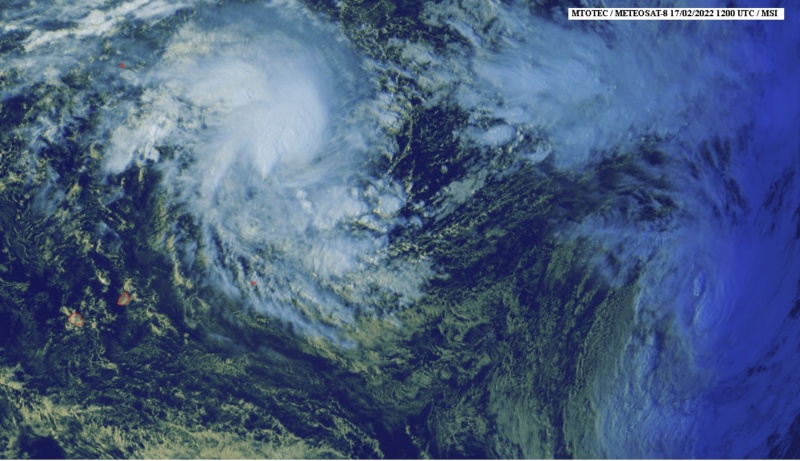 Le système devrait passer au plus près de La Réunion le lundi 21 février dans la matinée à une distance dont l’estimation est à ce jour de 300 km au Nord de l’île (+ ou – 150 km) alors qu’il aura évolué au stade de cyclone tropical ou même de cyclone tropical intense. Même si le cœur du cyclone devrait épargner l’île, des conditions météorologiques dégradées devraient être observées sur le territoire dès le samedi 19 février dans l’après-midi et de façon plus