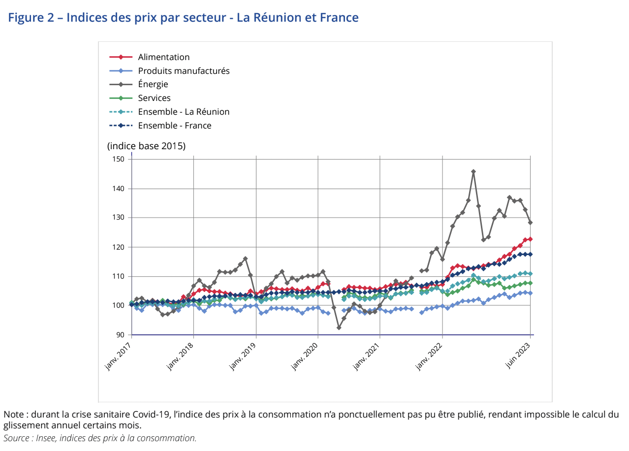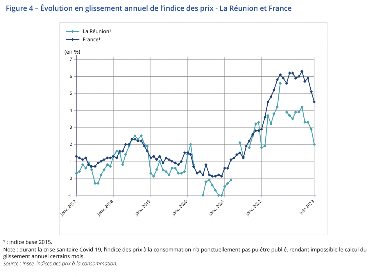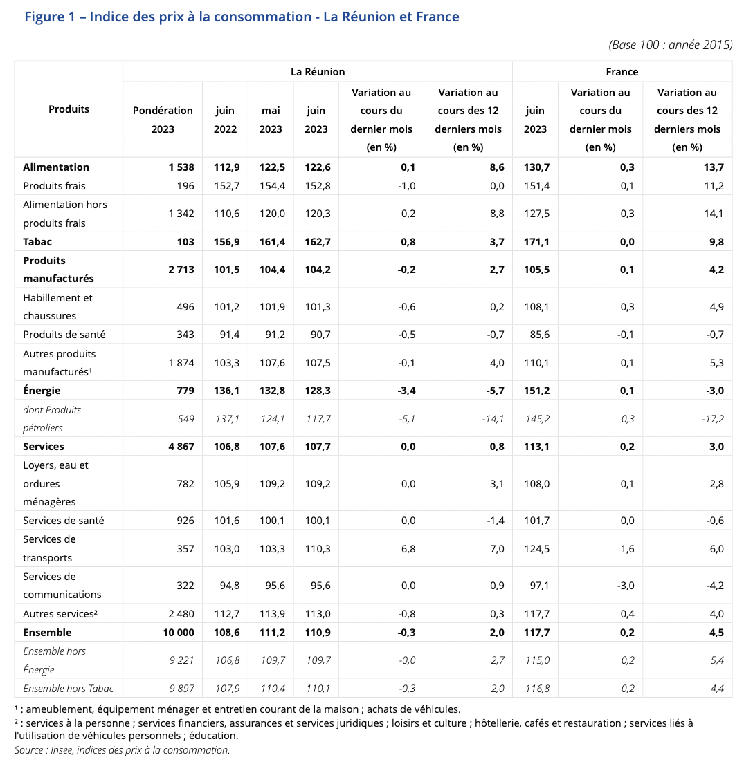 hausse des prix sur un an en juin à La Réunion retrouve un niveau comparable à celle de février 2022.
