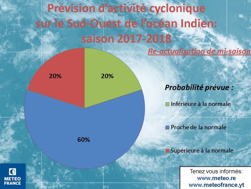 La saison cyclonique 2017-2018 a connu un démarrage très tardif mais l’activité soutenue enregistrée au mois de janvier a permis de combler le retard : le bilan (4 systèmes, ayant tous atteint le stade de cyclone) est en effet proche de la normale pour une première partie de saison dans le bassin Sud-Ouest océan Indien, malgré une répartition très irrégulière dans le temps.