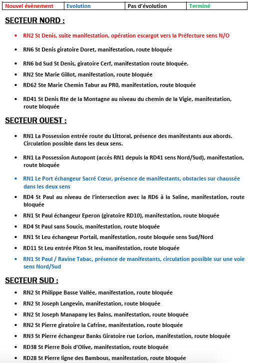 "En raison de la poursuite des blocages routiers et des débordements du mouvement citoyen, par mesure de sécurité, l’EFS La Réunion – Océan Indien a décidé de suspendre l’activité des collectes de sang (fixes et mobiles) jusqu’au retour à la normale de la situation."