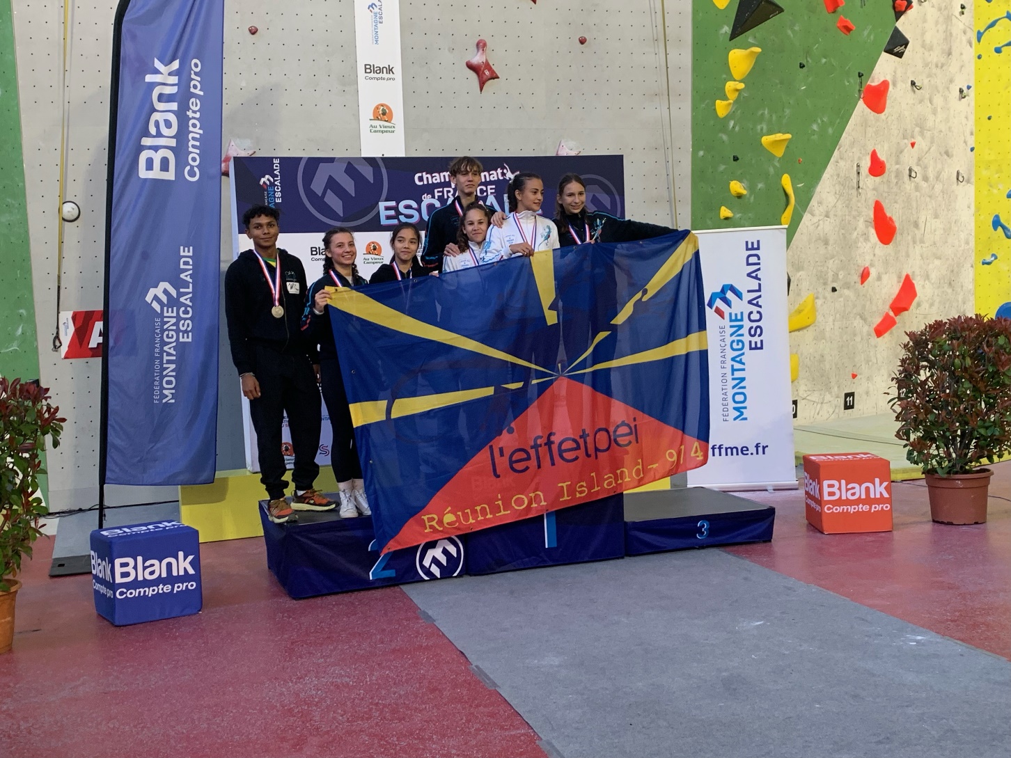 Ce samedi 23 mars 2024 à Tarbes sept athlètes Réunionnais ont rapporté sept médailles, dont trois titres de champions de France et quatre titres de vice-champions de France, lors des Championnats de France de vitesse jeunes. Nous publions ci-dessous leur communiqué (photo : Fédération française de la montagne et de l'escalade)