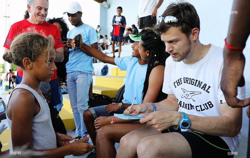Là, le médaillé olympique des JO de Rio bronze sur 200 m a été généreux avant de donner de sa personne sur la piste, pointes aux pieds. Satisfait de l’accueil, des conditions d’hébergement (au centre de vacances de l’Etang-Salé les Bains), de la cuisine réunionnaise, Christophe a ainsi profité du soleil réunionnais, après un hiver clément, mais un hiver quand même à Aix-les-Bains, pour passer la vitesse supérieure dans sa préparation.